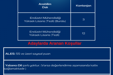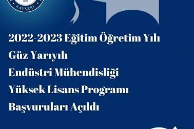 2022-2023 Eğitim-Öğretim Yılı Güz Yarıyılı Endüstri Mühendisliği Yüksek Lisans Programları Başvuruları Açılmıştır.