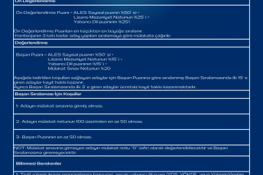 2- Eşit başarı puanına sahip olanlar arasında önceliğin belirlenmesinde öncelikle ALES Sayısal puanı ve daha sonra lisans mezuniyet notu dikkate alınır.