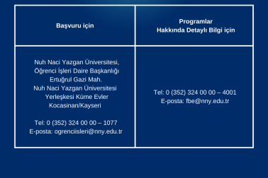 Nuh Naci Yazgan Üniversitesi, Öğrenci İşleri Daire Başkanlığı Ertuğrul Gazi Mah. Nuh Naci Yazgan Üniversitesi Yerleşkesi Küme Evler Kocasinan/Kayseri