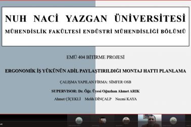 Bölümümüz son sınıf öğrencileri Bitirme Projesi kapsamında tamamlamış oldukları projelerini Bölüm Başkanımız Prof. Dr. Erkan Köse ve Bölüm Öğretim Üyelerimizden (Oğuzhan Ahmet Arık , Gülçin Canbulut , Orhan Dengiz ) oluşan jüri üyeleri karşısında sunmuşlardır.