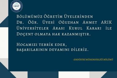 Bölümümüz Öğretim Üyelerinden Dr. Öğr. Üyesi Oğuzhan Ahmet Arık Üniversiteler Arası Kurul Kararı ile Doçent olmaya hak kazanmıştır.