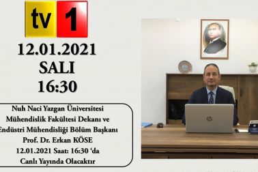 Mühendislik Fakültesi Dekanı ve Endüstri Mühendisliği Bölüm Başkanı Prof.Dr. Erkan KÖSE 12.01.2021 Saat: 16:30' da TV1' de Canlı Yayında Olacaktır