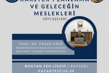 NNY Üniversitesi Mühendislik Fakültesi Dekanı Prof. Dr. Erkan KÖSE, 29 Kasım 2021 Saat: 10:30' da Kayseri Bünyan Fen Lisesi öğrencileri ile buluşuyor.