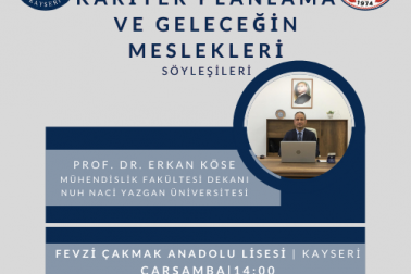 NNY Üniversitesi Mühendislik Fakültesi Dekanı Prof. Dr. Erkan KÖSE, 9 Mart 2022 Saat: 14:00' da Fevzi Çakmak Anadolu Lisesi öğrencileri ile buluşuyor.